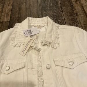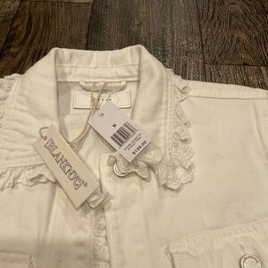 NWT, BlankNYC White Denim Jacket with eyelet trim, Size Medium, MSRP 128.00