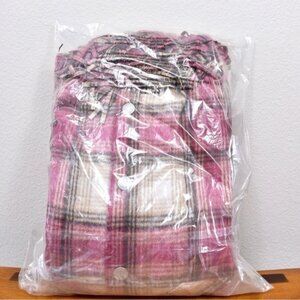 NWT BlankNYC Woodstock Wool Plaid Fringe Shacket XS Pink Oversized Flannel