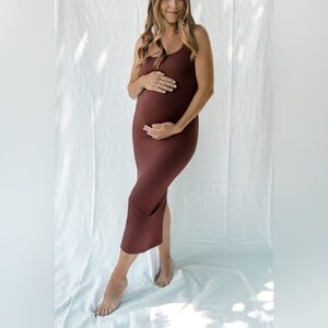 NWT Blanqi Maternity Ribbed Midi Dress in Coco Brown