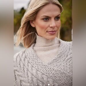 NWT Blarney Mills Irish Merino Wool Cable Poncho Supersoft Toasted Oat