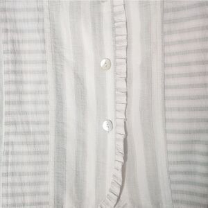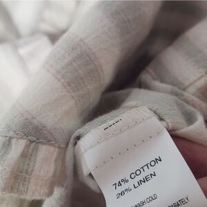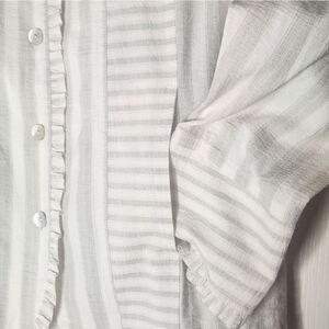 NWT Blast M Striped CreamSagePocketsRuffle LSlv ButtonUp LINEN Blend Women Shirt