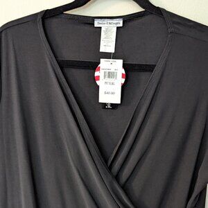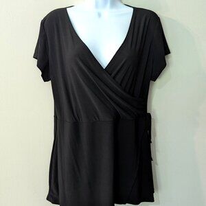 NWT Bleeker & McDougal Women's Black Faux Wrap Front Short Sleeve Blouse PXL