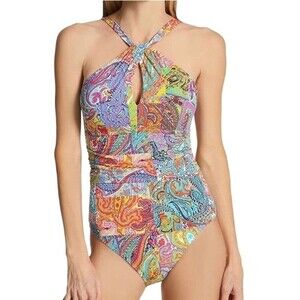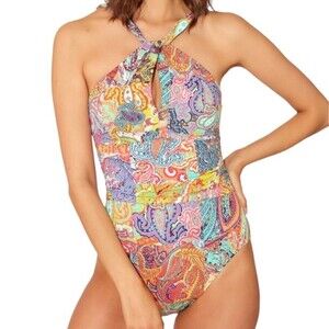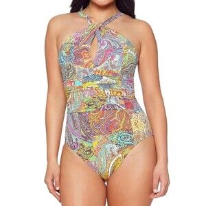 NWT Bleu Rod Beattie Paisley Print Halterneck One-Piece Swimsuit Women’s Size 10