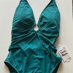 NWT Bleu Rod Beattie Ring Me Up Halter One Piece Swimsuit in Agave Size 6