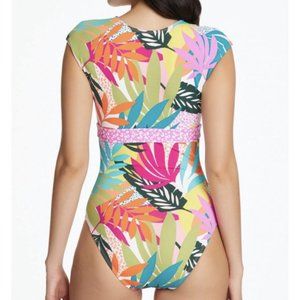 NWT Bleu Rod Beattie Women Wild Heart Key West Cap Sleeve One Piece Swimsuit