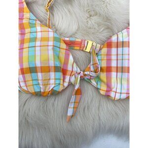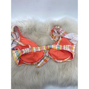 NWT Bleu Rod Beattie Women's PLAID Ruffle Adjustable Strap Swim Bikini Top Size