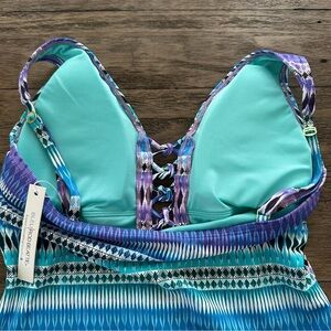 NWT Bleu Rod Beattie size 10 Tankini Swim Top Purple Turquoise Swimsuit New