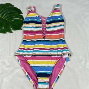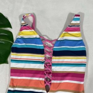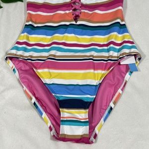 NWT Bleu by Rod Beattie [ 4 ] Lattice Striped One-Piece Swimsuit