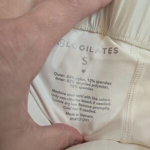 Cute NEW w/tags Blogilates Ruffle Short, Size S. Nice Cream Color with side pockets and comfy fit! Material info is photographed.