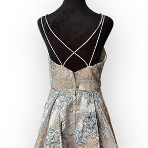 NWT Blondie Nites Juniors Beige Scoop Neck Floral Brocade Formal Ball Gown Size 7