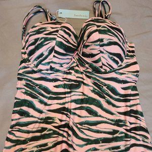 NWT Bloom Birdsong Tankini 38DD Pink and Green Animal Print