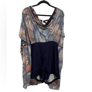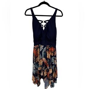 NWT Bloom Chic V-Neck Handkerchief Swim Dress Tropical Pattern Plus Size 22-24W.