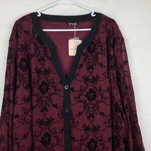 NWT Bloom Chic Womens Plus Sz 30/6X Dressy Button Front Long Sleeve Blouse Top