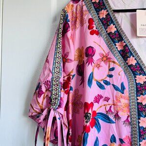 Flowy pink boho maxi dress by Bloomchic. It is NWT and fully lined and has ties at the arms. It is beautiful and flowy and vibrant. You will feel beautiful in this dress.