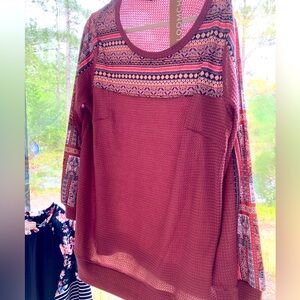 NWT BloomChic GINGER” 1x 14 16 terracotta waffle knit long sleeve top flowers.