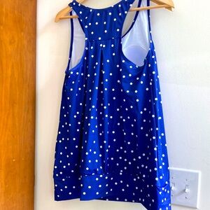 NWT BloomChic “LYDIA” blue white poly dot swim tank top.Racer back. Sz 1x 14 16