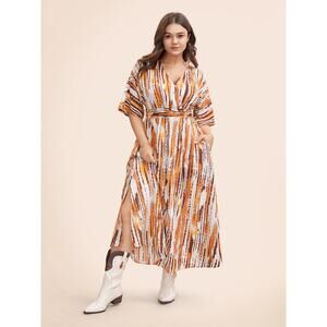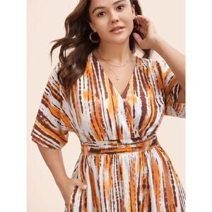 NWT BloomChic Women Striped Overlap Collar Maxi Dress Plus Size: 14-16 (1X)