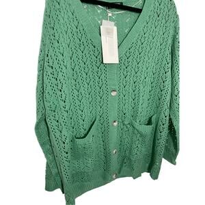 NWT Bloomchic Women's Sz 12 Grandma Teal Lagenlook Statement Button Cardigan
