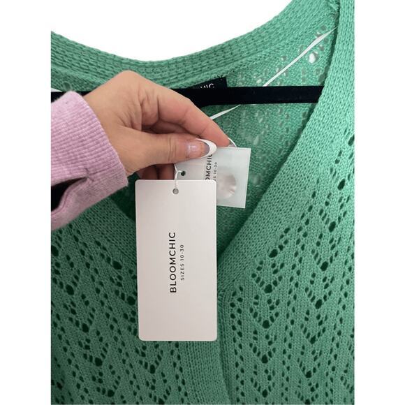 NWT Bloomchic Women's Sz 12 Grandma Teal Lagenlook Statement Button Cardigan
