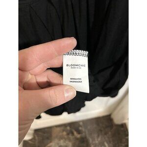NWT Bloomchic Women's US 30 Long Sleeve Black Pleated Blouse Scoop Neck Tunic