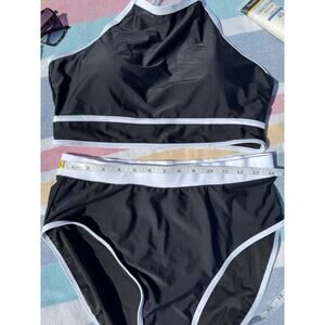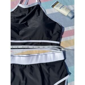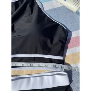 Blooming Jelly Bikini, Black with white edges, Sz Small. Features high neck with criss-cross back straps that are adjustable.