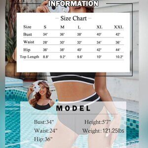 NWT Blooming Jelly High Waisted Ribbed Bikini Set Black & White BMJL Small. Material is 85% Poly 15% Spandex. See attached Size Chart for Sizing.