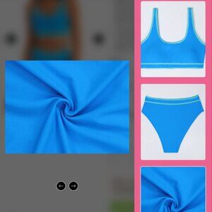 NWT Blooming Jelly Sporty Color Block Cheeky High Cut Bikini Set Small. Material is 82% Nylon 18% Spandex. See attached Size Chart for Sizing. Retails $50, On Sale in Stores for $33