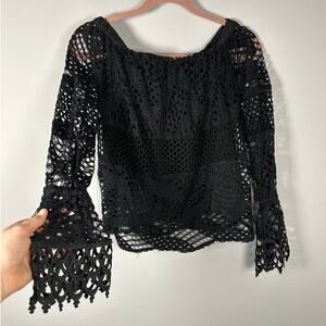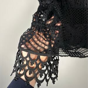 NWT Bloomingdale's Aqua Black Lace Off The Shoulder Blouse Women's XS