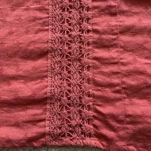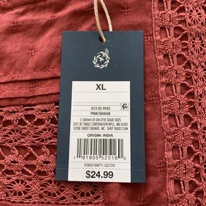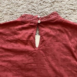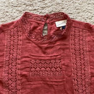 Universal Thread rust colored blouse with puffy sleeves, beautiful crochet and lace detail