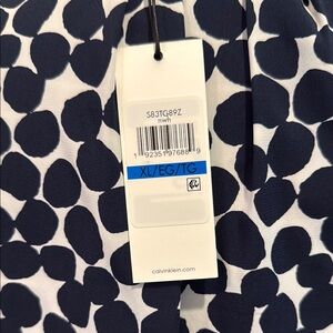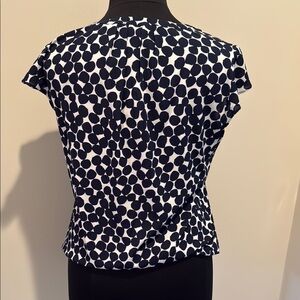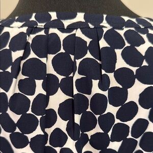 Brand new, navy and white polka dot top. Slight V neck. 97% Polyester, 3% Spandex
