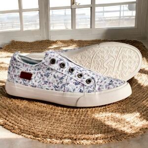 NWT Blowfish Mighty Canvas 8 Blue Floral White No shoelaces Memory foam Sneakers