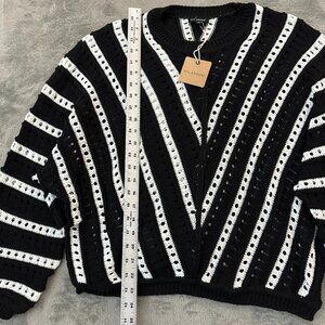 New with tags, Blu Pepper black and white open knit sweater, oversized and slouchy fit. Women's size medium.