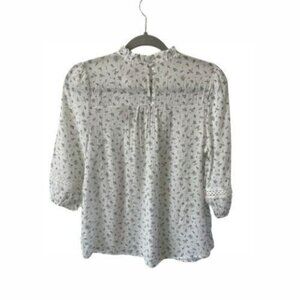 NWT Blu Pepper Ditsy White Floral Balloon Sleeve Top Small CottageCore ruffle crochet lace peasant dainty feminine
