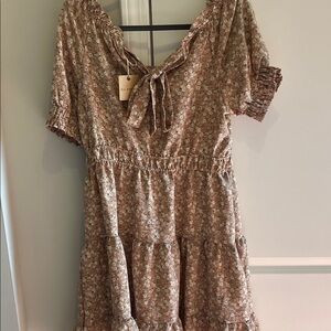 Stylish dress with floral pattern. Features puff sleeves and tiered dress. NEW and flowy.