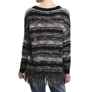 NWT Blu Pepper Soft Black Striped Bohemian Furry Fringed Hem Sweater Medium