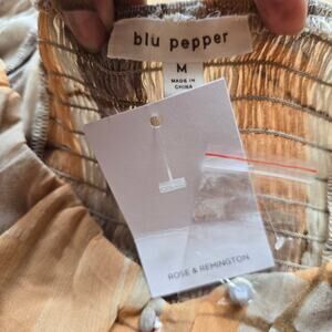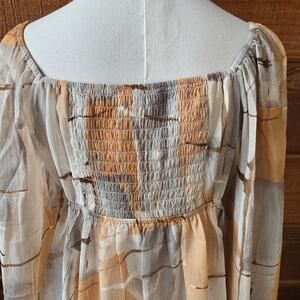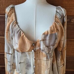 NWT Blu Pepper Womens Y2K Sheer Peasant Babydoll Top M Abstract Sweetheart