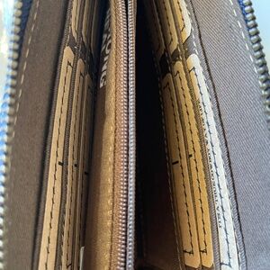 Interior featuring 12 credit card slots, two slip pockets and one zipper closure divider pocket