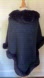 NWT Blue & Black knitted pull over poncho w/blue sequins & Blue fur one size