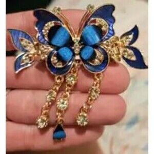 NWT - Blue Butterfly Hair Clip with Rhinestone Tassel and Glitter