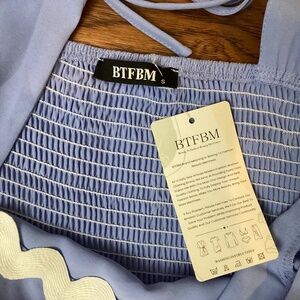 NWT Blue Flowy Maxi Dress w/ White Ric Rac Tie Back Smocked Puff Sleeves Size S