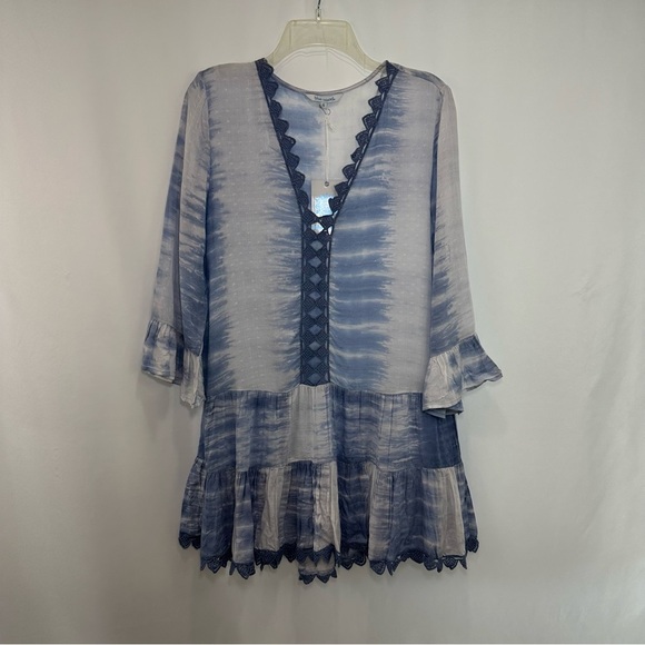 NWT Blue Island Cover Up Women’s Small Beach Dress White Blue Eyelet Crepe Swim