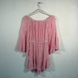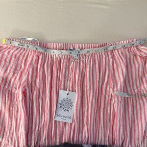 NWT Blue Island Pink White Metallic Striped Off The Shoulder Mini Dress Size S