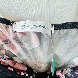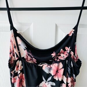Elegant black dress with pink floral pattern. Perfect for any occasion.