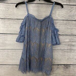 NWT Blue Rain Blue Lace Off-Shoulder Top Size M
