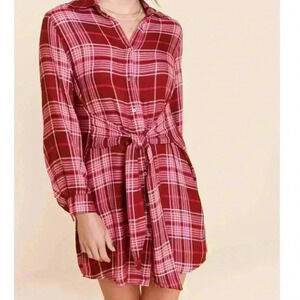NWT Blue Rain Plaid Waist Tie Mini Dress