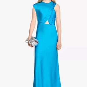 NWT Blue SANDRO Cut-out one-shoulder satin maxi dress