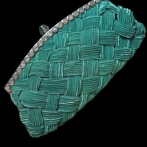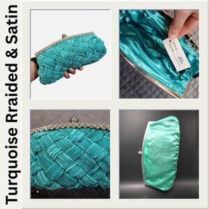 NWT Blue Satin Rhinestone Braided Clutch, w/ Shoulder & Crossbody Chains Chain