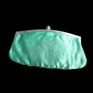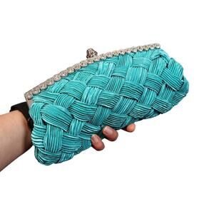 NWT Blue Satin Rhinestone Clutch Shoulder Bag, Turquoise, Detachable Chain