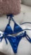 Stunning blue sequin bikini set with jewel embellishments. Perfect for a fitness competition or a glamorous pool day.