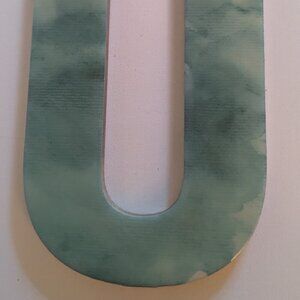 NWT large uppercase letter 'O' pale teal blue and off white marbled finish sign, Michael's Ashland 'Sunbaked' collection. This glossy finish, tall and narrow letter sign features an opening for hanging on the reverse, measures approx 11.5" tall x 6.25" wide, and is new with tags. A striking birthday gift for or Olivia, Octavia, Orlando, or makes a great addition to your Autumn home decor :)